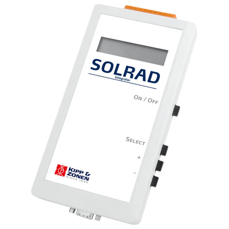 Solrad自带的显示器可以显示与其连接的Kipp&Zonen辐射传感器所测量出来的辐射值。测量仪能够在读去测量数据时会参考传感器的校准系数,因此显示器显示出来的测量值是经自动标定后的值。